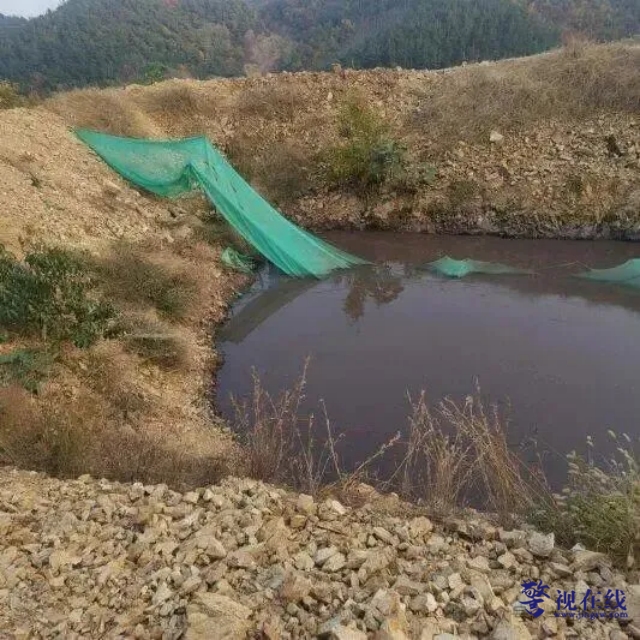 随后,记者来到养殖场所在地,发现这所养殖场东侧建有一座沉淀池,旁边有一条通往山上的路被封闭,记者决定上山一探究竟。几经辗转,终于来到北侧的山坡上,居然发现两个存满污水的大坑。这两个土坑长约15米,宽5米左右,深不见底,坑中存了大量黑水,散发着恶臭。土坑明显有人工开凿的痕迹,覆盖着一层绿网。